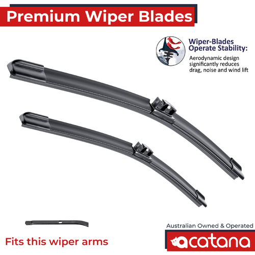 Windshield wiper replacement is easy with our twin pack bundles that include popular driver and passenger side length combinations. acatana blades are precision engineered to provide excellent performance in all weather conditions, quiet wiping without judder or squeaking, and long service life. Blended dual rubber compound guarantees a long lifetime. The kit comes in plastic-free eco-friendly packaging from our Australian warehouse.