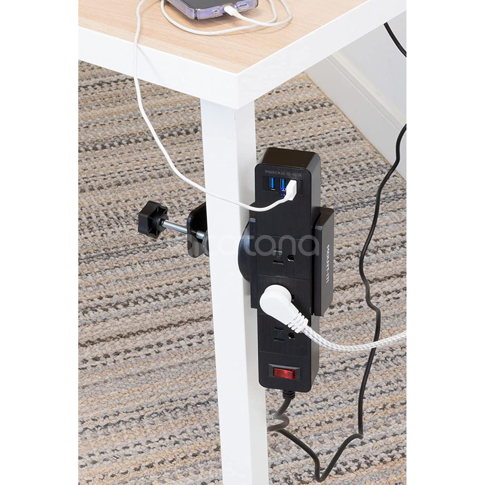 acatana Power Strip Board Holder Clamp Desk Mount Adjustable Cable Management Clamp Mount Table Powerboard fits USB Ports Home