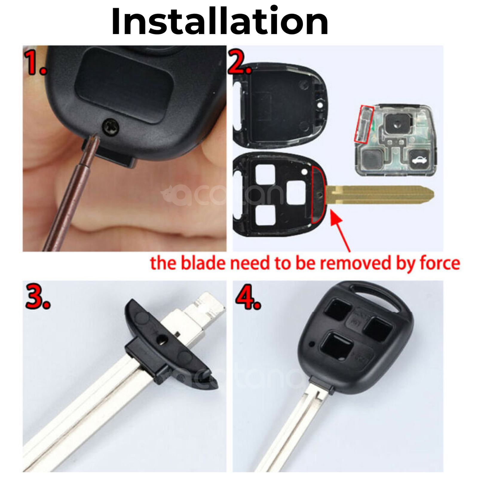 Acatana Remote Flip Car Key Shell Case Fob for Toyota Prado Avensis Corolla Rav Kluger Tarago 2 Button