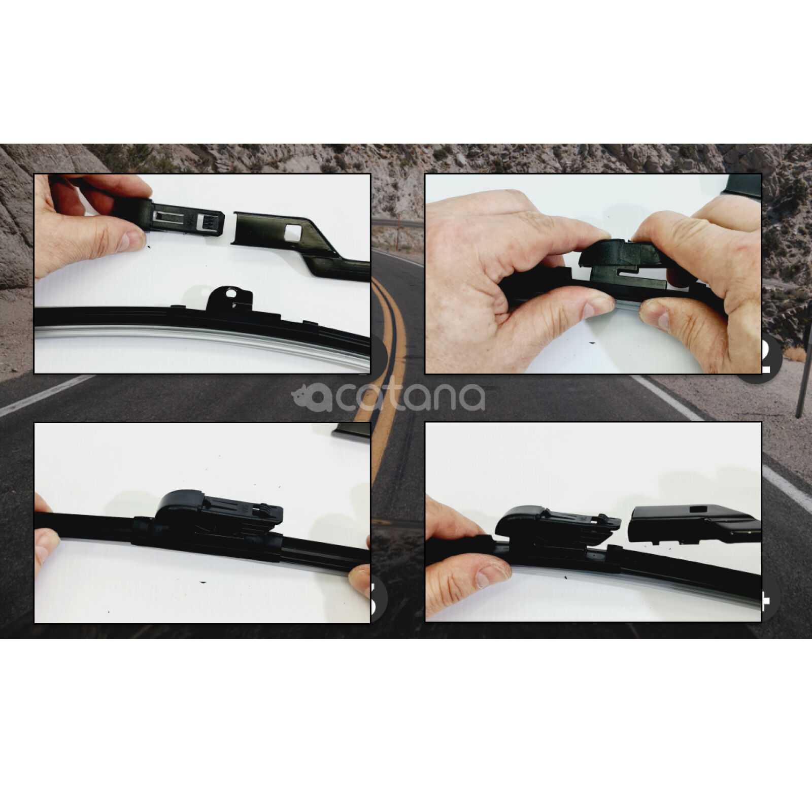 Windshield wiper replacement is easy with our twin pack bundles that include popular driver and passenger side length combinations. acatana blades are precision engineered to provide excellent performance in all weather conditions, quiet wiping without judder or squeaking, and long service life. Blended dual rubber compound guarantees a long lifetime. The kit comes in plastic-free eco-friendly packaging.
