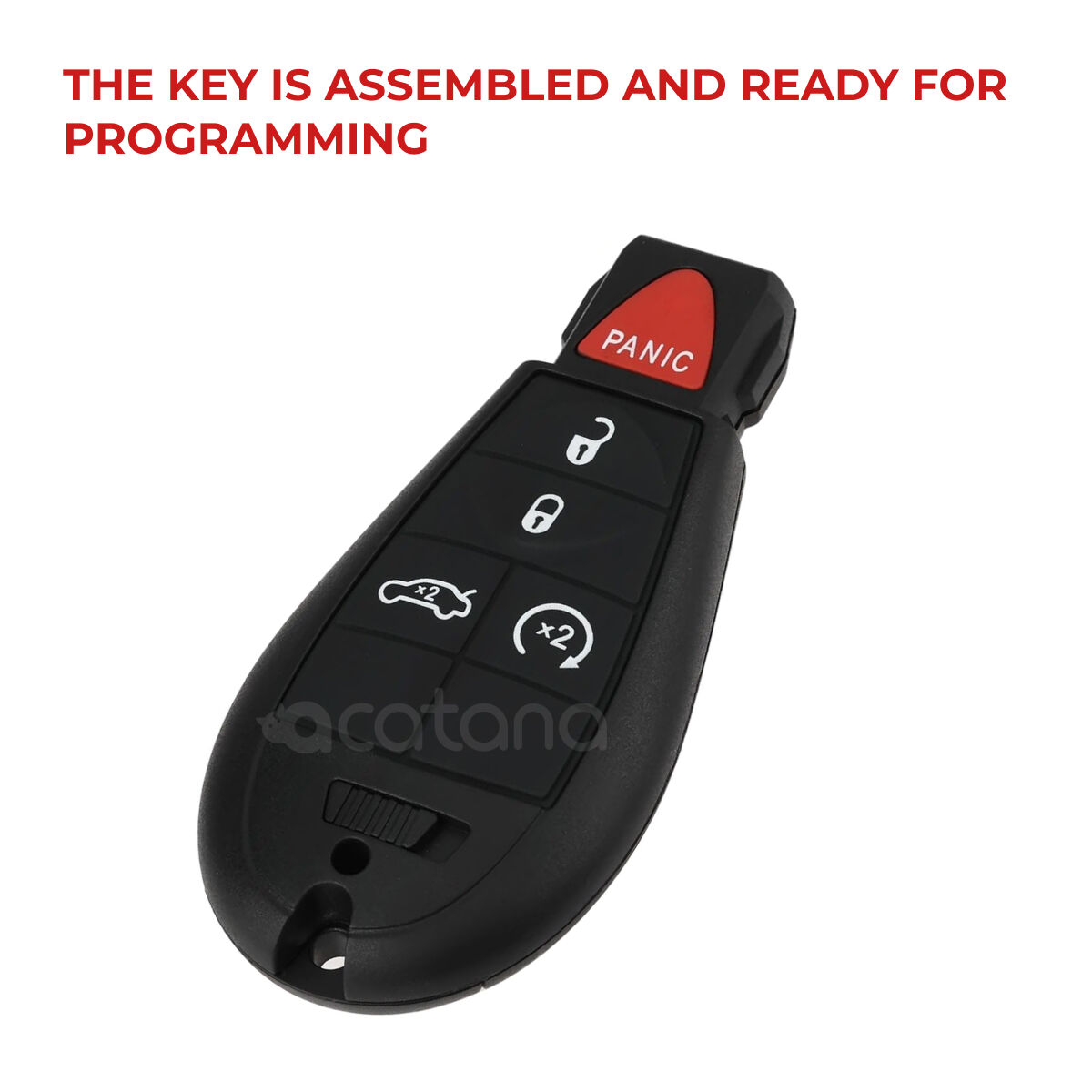 This Complete remote car key for Dodge Caravan 2010 - 2014 is a high-quality replacement or spare. It comes with a 5-button case, uncut blade, ID46 transponder chip, and 433MHz remote control with battery, ready for cutting and programming.