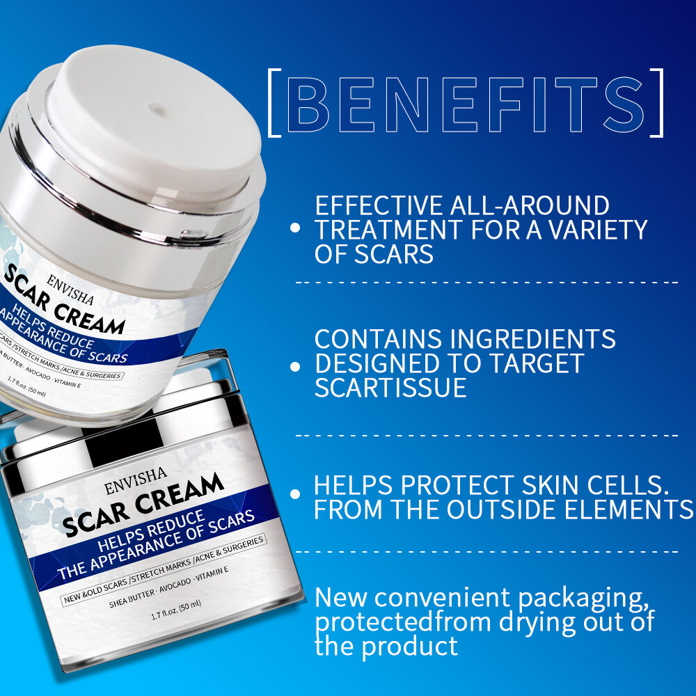 NATURAL & SAFE FORMULA SCAR CREAM - The natural ingredients of our scar cream for body & face are key to boosting the healing and recovery of scars. Formulated with premium ingredients to decrease irritation without any worries.