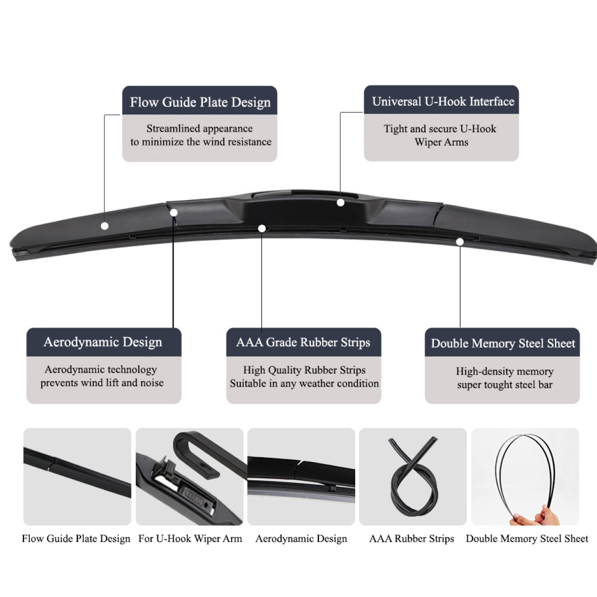 - SIMPLE U-HOOK INSTALLATION: This set is easy to fit for a quick DIY replacement. These blades perfectly adhere to windshield curvature.