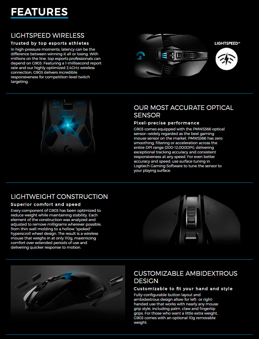 Logitech 910-005087 G903 Lightspeed Wireless Gaming Mouse