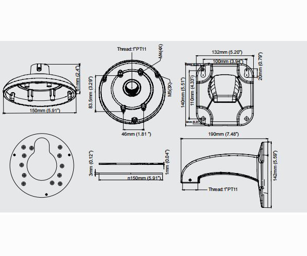 "Maven Series" MESSOA SAD013 - Cable Management Wall Mount Cable management wall mount, aluminum, white For mounting on wall with cable management: Package Content: Dome cap, Wall mount bracket, and Adaptor plate Support up to 3kg (6.6 lb) Compatible with MESSOA Network Camera: NOD385, NOD395, NOD398 Mechanical Material aluminum Color white Dimensions (WxHxD) Wall mount bracket: 142 x 132 x 190 mm (5.59" x 5.20" x 7.48") Dome cap: 150 X 150 X 61 mm (5.91" x 5.91" x 2.40") Adaptor plate: 150 X 150 X 3 mm (5.91” x 5.91” x 0.12”) Weight 1.15kg (2.53 lb)