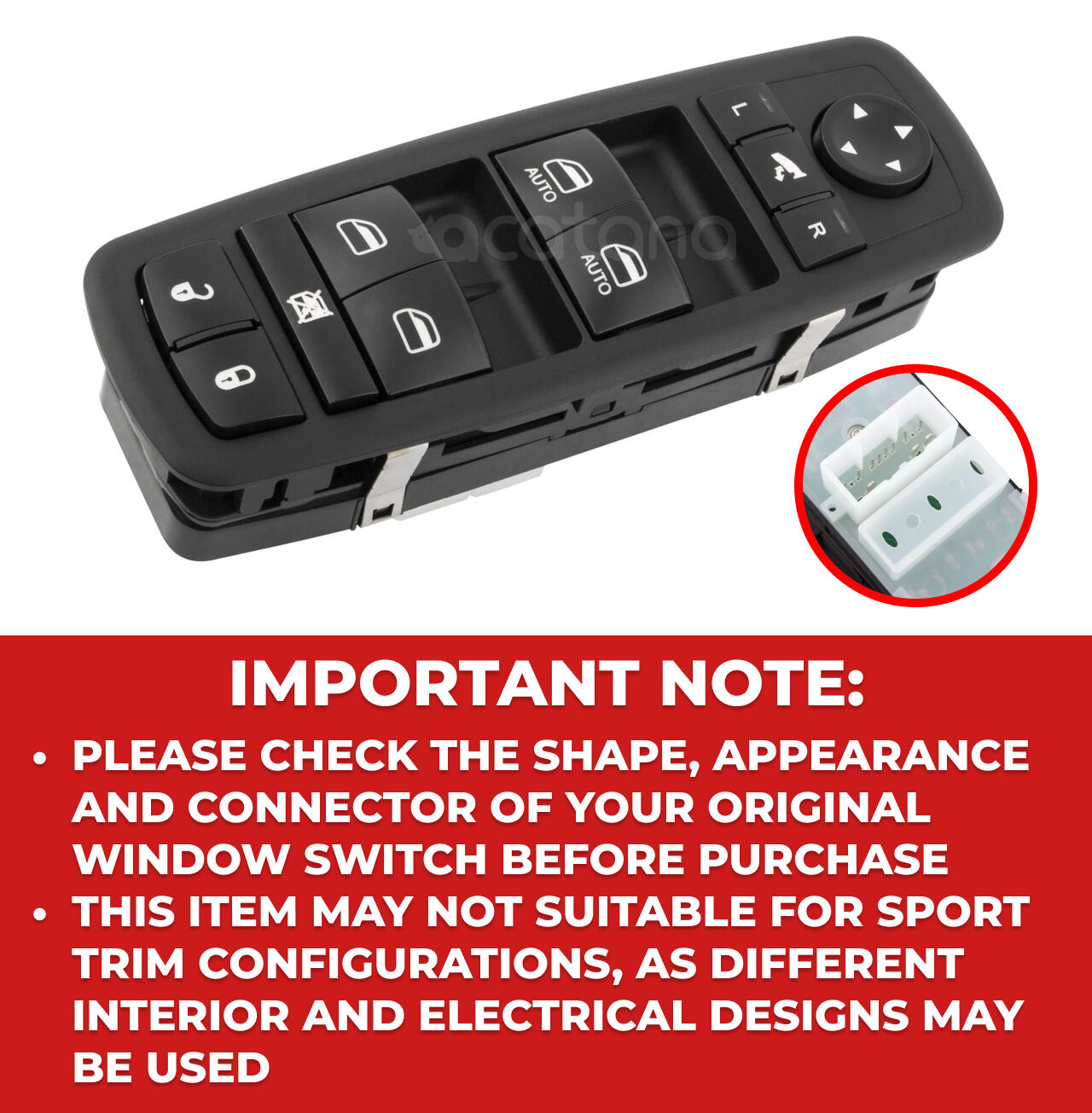 - Please check the shape, appearance and connector of your original window switch before purchase