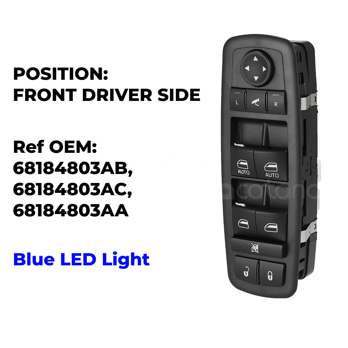 Upgrade Your Jeep Power Window Mirror Electric Control! This Power Master Window Switch is a direct replacement for your Jeep Grand Cherokee IV (WK, WK2). Designed for seamless integration, this switch controls all power windows and side mirrors, offering effortless operation with a premium Blue LED illumination.