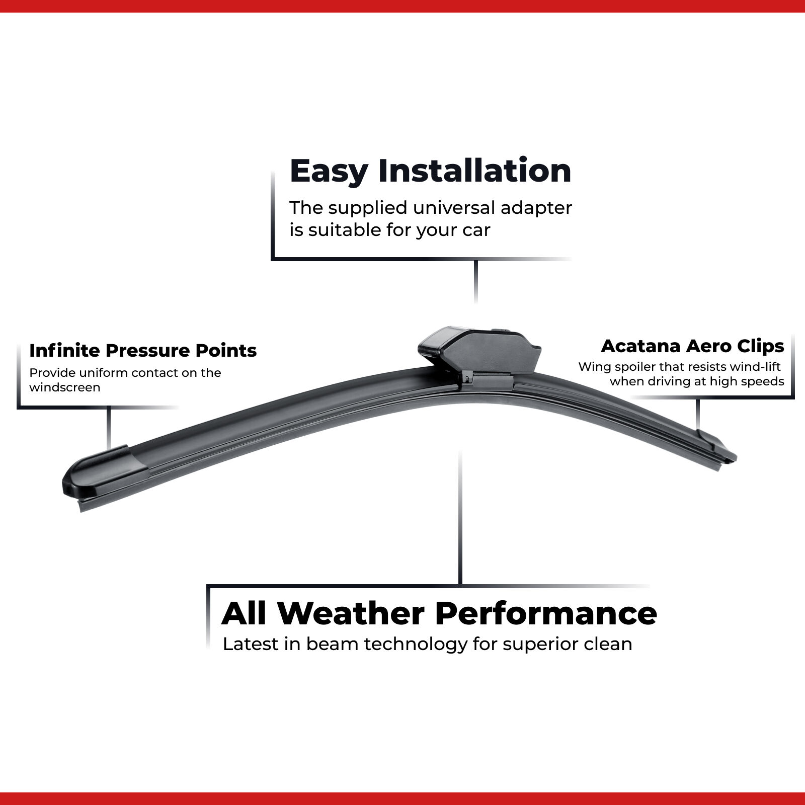acatana 999 Technology combines beam wiper performance with innovative rubber compound to achieve extreme windscreen protection and extra long lifespan.