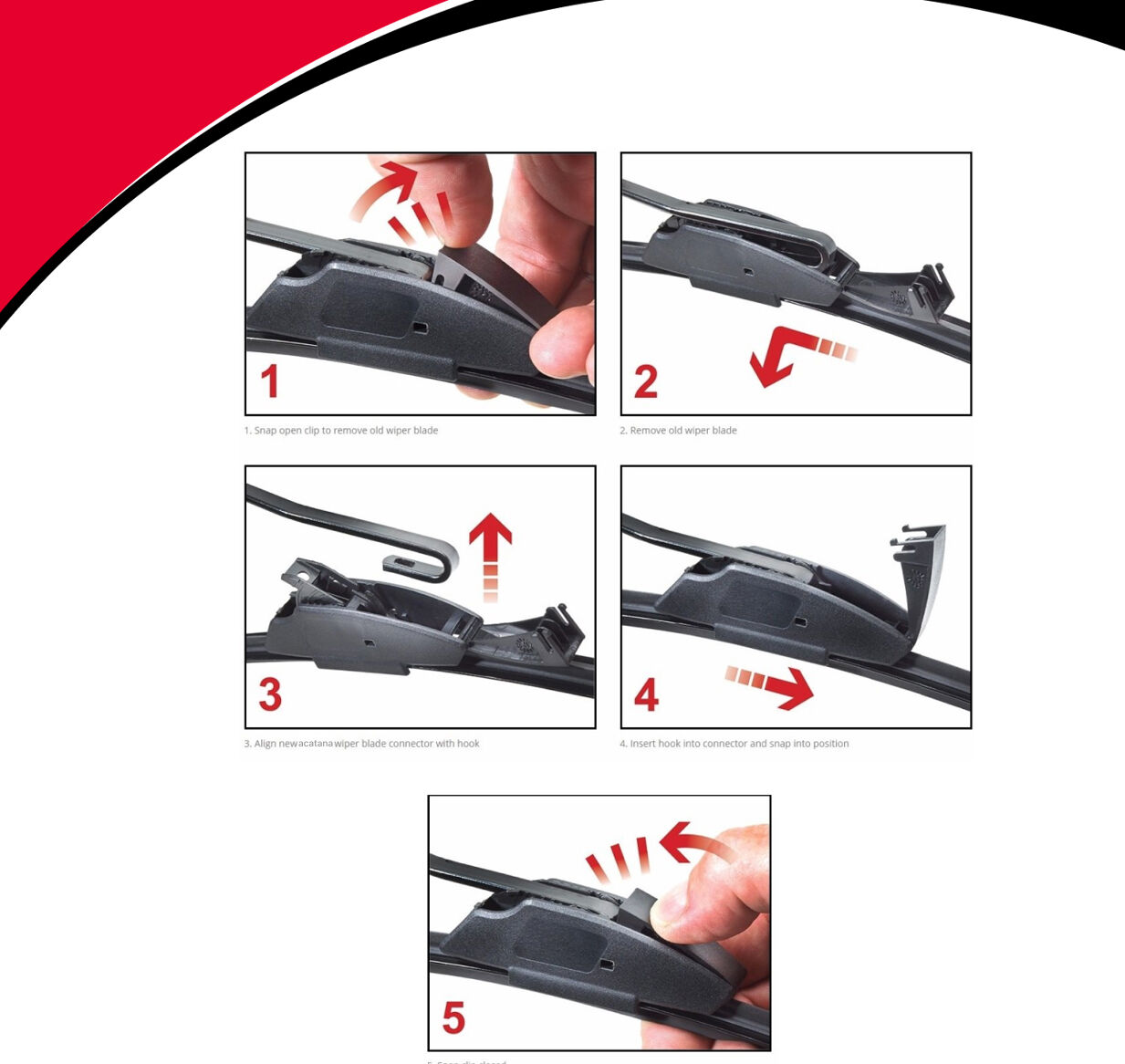 - 4. Fit new wiper blades. Refer to the installation images.