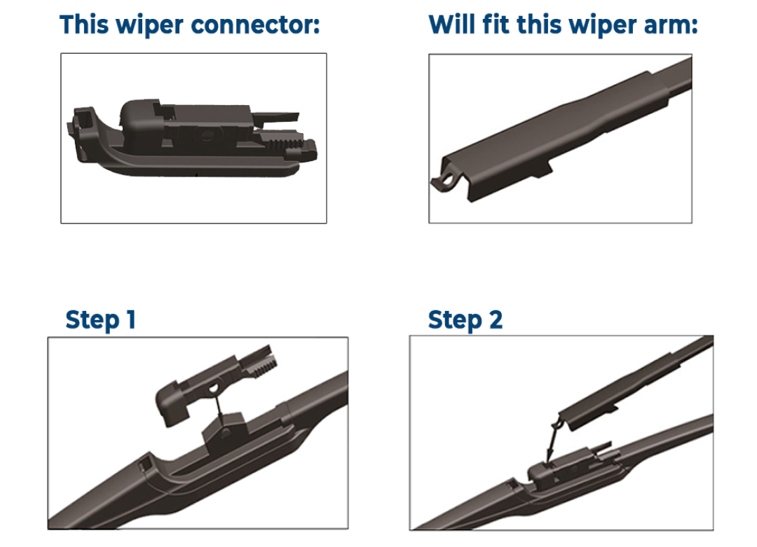 - 4. Fit new wiper blade. Refer to the installation images.
