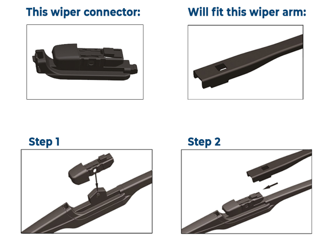- 4. Fit new wiper blade. Refer to the installation images.