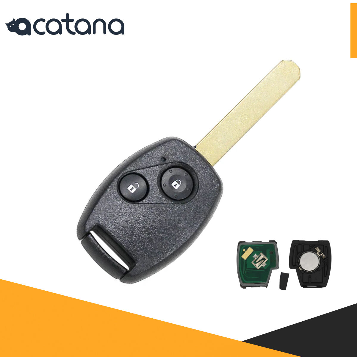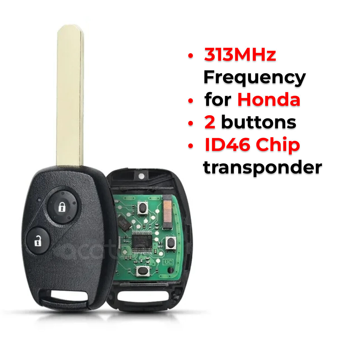 This is a complete remote car key for Honda Civic Odyssey CR-V. A great replacement for your old, worn-out or lost car key can also be a spare key. This replacement key is assembled and ready for programming. It includes a 2-button key shell case, uncut key blade, transponder chip, 313.8MHz remote control and battery.