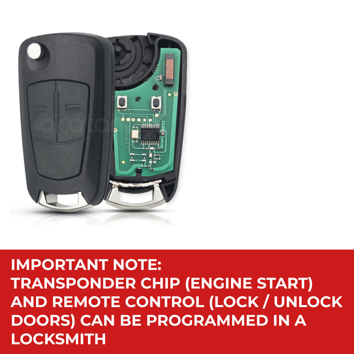 This Complete remote car key for Holden Astra H 2005 - 2009 is a high-quality replacement or spare. It comes with a 2-button case, uncut blade, ID46 transponder chip, and 433MHz remote control with battery, ready for cutting and programming.