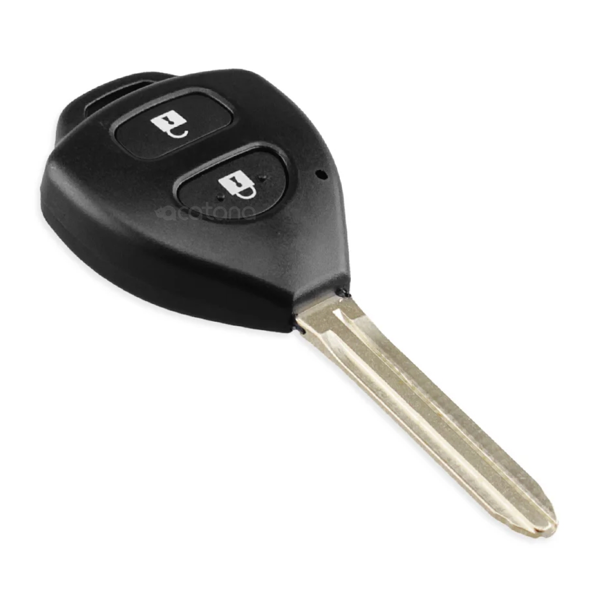 This is the complete remote car key for Toyota. The great replacement for your old, worn-out or lost car key can also be a spare key. This replacement key is assembled and ready for programming. It includes a 2-button key shell case, uncut key blade, remote module 314MHz and immobilizer (transponder chip) 4D67, the key has the part number - 28240
