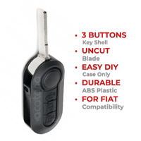 This Remote Key Shell Case is a perfect replacement for your Fiat key fob. If your old car key shell is broken, cracked, or worn out, this high-quality replacement shell will make it look and feel like new again. This replacement key fob flip shell includes only the outer case and uncut key blade. It’s easy to install - simply transfer the internal electronics (transponder chip and remote board) from your original key.