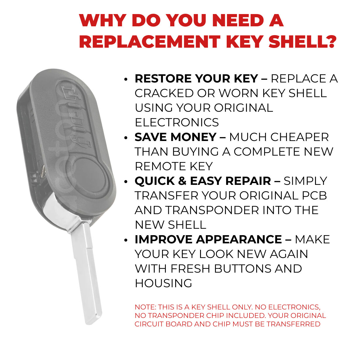 - Easy Installation: No electronics included - simply transfer internals from your old key