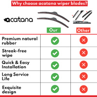 Windshield wipers replacement is easy with our twin pack bundles that include popular driver and passenger side sizes fit for most cars. acatana wipers are precision engineered to provide excellent performance for your Suzuki Carry 2013 - 2026 in all weather conditions, quiet streak-free wiping without judder or squeaking, long service life, and quick fit. Blended dual rubber compound guarantees a long lifetime.