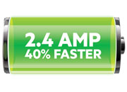 | Charge your portable devices quickly while protecting them from damage and data loss thanks to two integrated USB ports. Ideal for smartphones and tablets, these USB ports charge at 2.4 amps, offering faster charging times than traditional USB ports, with added protection. |