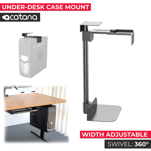 acatana Under Desk or Wall PC Mount: Revolutionize your workspace and reclaim your desk real estate with this ingenious and versatile mounting solution. Engineered to perfection, this cutting-edge mount offers the ultimate combination of functionality, convenience, and style. Under Surface Mount Conveniently mounts your PC case under a desk or flat work surface for off-the-floor, easy access (Can be wall mounted)