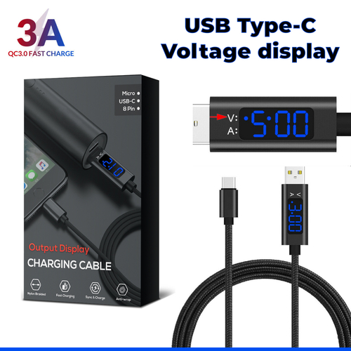 Type-C Fast Charging Cable Voltage Display LED USB-C Samsung Huawei 3.0A