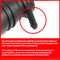 - Please be aware that while this washer pump model is compatible with many vehicles, the shape of the water tube hose connection may differ from your original pump. The hose connection on this pump may have a different form, which could affect its installation if your vehicle requires a specific shape.